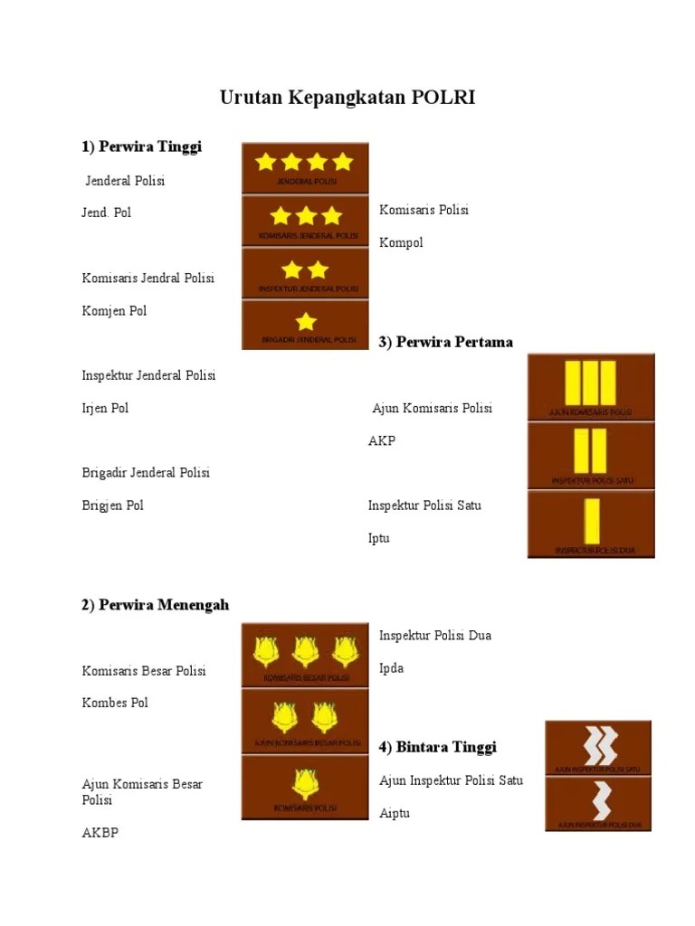 Polis diraja malaysia mempunyai 16 peringkat pangkat yang dibahagikan kepada 2 kategori, iaitu kumpulan pegawai kanan polis bermula dari pangkat inspektor . Senarai pangkat dalam polis diraja malaysia (pdrm) polis diraja malaysia mempunyai 17 peringkat pangkat yang dibahagikan kepada 2 kategori, . Polis diraja malaysia mempunyai 17 peringkat pangkat yang dibahagikan kepada 2 kategori, iaitu kumpulan pegawai kanan polis bermula dari pangkat inspektor . Tanda kepangkatan polri adalah daftar tanda pangkat yang digunakan oleh kepolisian negara indonesia. Urutan pangkat polisi dari rendah sampai tinggi dan gajinya literacy militer. Irjen atau inspektur jenderal menempati posisi di atas brigadir jenderal. Senarai pangkat polis pdrm, pangkat dalam polis diraja malaysia dari kategori pangkat tertinggi sehingga pangkat rendah dalam perkhidmatan. You have just read the article entitled susunan pangkat polis. Kenali pangkat pangkat dalam polis diraja malaysia pdrm iluminasi. Di atas menunjukkan maklumat tentang pangkat polis di malaysia mengikut pangkat susunan yang berkhidmat untuk malaysia. Polisi dengan pangkat irjen dapat menempati jabatan sebagai atau . Urutan pangkat polisi lengkap dengan gambar dan penjelasannya.